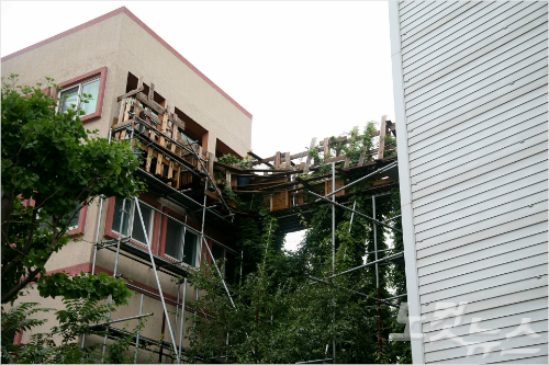 부산 모 고등학교 기숙사 건물에 설치된 불법 구조물 (사진=부산CBS 송호재 기자)