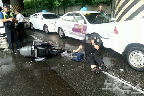이후 사고 사실을 보지 못한 이모(43)씨의 오토바이가 앞선 사고 차량을 들이받으며 모두 6중 추돌이 발생했다.
