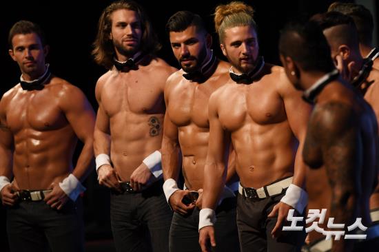 3일 오전 서울 송파구 올림픽공원 올림픽홀에서 열린 '치펜데일(Chippendales)쇼' 쇼케이스에서 출연진이 포즈를 취하고 있다. 1979년 시작된 여성전용 ‘치펜데일쇼’ 는 100개국 이상의 도시에서 투어 공연을 진행, 1억 명이 넘는 여성 관객 앞에서 성황리에 공연을 한 기록을 세웠다.