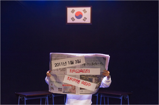 배경 음악으로 정수라의 ‘아! 대한민국’과 정태춘의 ‘아, 대한민국’이 시차를 두고 들려왔다. 대한민국의 민낯은 어느 쪽일까? 음반 사전심의에 맞서던 정태춘의 뜻과 이 연극의 뜻이 일치한다는 생각도 하였다. 다시 네 개의 책상과 의자가 배열되고 무대는 조용해졌다. 동성애자들과 세월호 유족과 생존자들의 이야기가 혼합되어 진술되면서 연극은 끝난다.