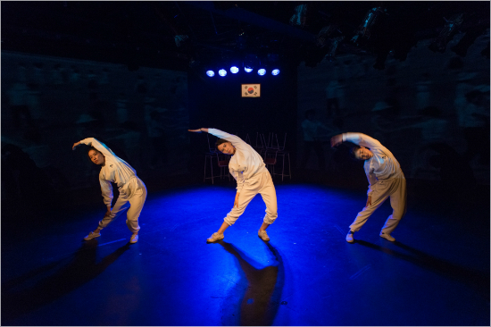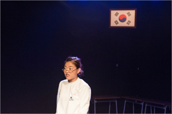 연극을 보는 내내 태극기에 신경이 쓰였다. 태극기는 무대의 중앙에 부착되어 있었다. 마름모꼴 형태의 연우소극장이라 그런지 태극기는 마치 원형감옥(팬옵티콘)의 감시자 같았다. 우리를 감시하는 국가의 모습, 끝없이 검열당하는 우리의 모습을 느끼며 연극을 보아야 했다.