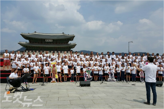 8일 정오 경복궁 광화문을 배경으로 아름다운 합창의 무대가 펼쳐졌다. 한국과 필리핀, 헝가리 소년 소녀들이 시민들을 상대로 깜짝 콘서트를 개최한 것. 120여명의 화음이 하나로 어우러지면서 평화의 노래를 만들어 냈다.