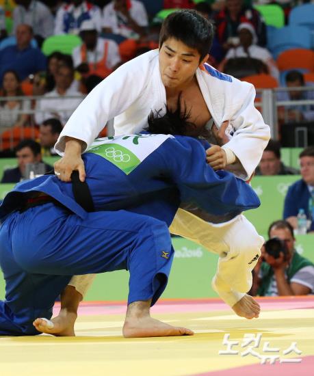 리우데자네이루 올림픽 남자 유도 -73kg에 출전한 안창림이 8일 오전(현지시간) 시리아의 KASEM M 와 32강 경기를 펼치고 있다. 안창림이 한판으로 16강에 진출했다.