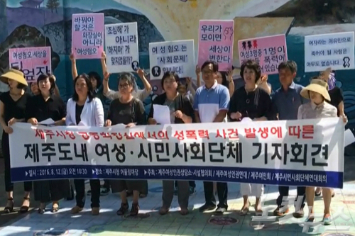 이들은 "제주도 성폭력과 가정폭력이 전국 최고 수준"이라며 "이번 공중화장실 사건을 계기로 여성 대상 범죄 예방을 위한 로드맵이 필요하다"고 말했다.