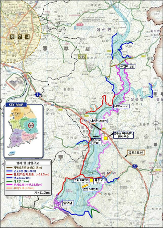 경북 영주댐으로 수몰되는 평은리교를 대체하는 새로운 다리가 건설된다.