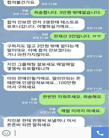 이들은 심지어 자신들이 요구한 금액보다 적은 돈을 보낸 남성을 상대로는 실제 처와 장모 등 가족 10여 명에게 음란 영상을 유포하기까지했다.