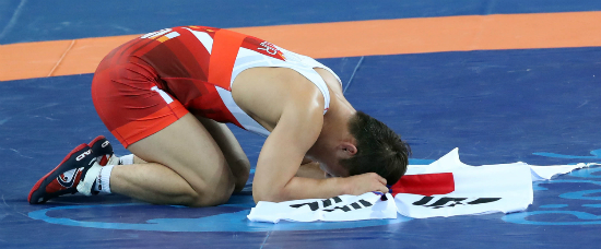 ◇ 김현정> 그렇군요. 김현우 선수, 동메달을 목에 딱 걸고 태극기 큰절을 하셨어요. 이 장면이 바로 우리 국민들이 뽑은 감동적인 순간 베스트 3위에 올랐는데. 엎드려서 펑펑 우는 모습 보고 너무 마음이 아팠어요.