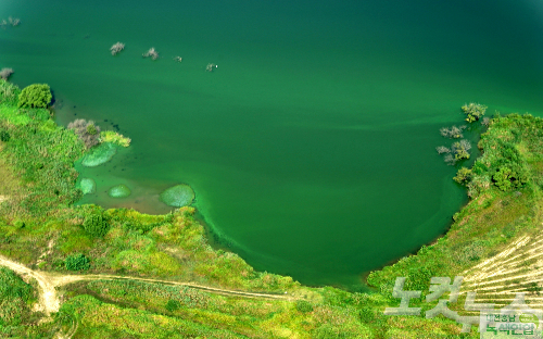 지난 18일 촬영한 사진에는 녹조로 가득 찬 부여 백제보와 유네스코에 등재된 부여 나성, 부여 왕흥사지, 웅포대교 등의 모습이 담겨 있다.