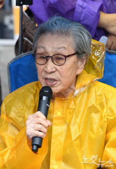 이에 대해 김복동 할머니는 이날 집회에서 "앞으로 후손들에게 '우리나라에 이런 비극이 있었구나'라고 알리기 위해 한 푼 두 푼 모아 소녀상을 세운 것"이라며 "100억이 아니라 1000억을 줘도 역사를 바꿀 수는 없다"고 반박했다.