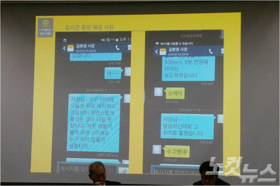 김 전 국장은 이날 길환영 전 사장과 주고받은 문자메시지를 공개하며 그 윗선인 청와대의 개입을 암시·추측할 뿐이었다.