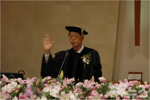노세영 총장은 취임사에 취임의 기쁨보다는 대학 발전을 위한 책임감과 비전을 담는 데 무게를 뒀다. 2018년이 되면 대학 정원이 고등학교 졸업생을 초과해 대학 구조조정이 불가피하기 때문이다.