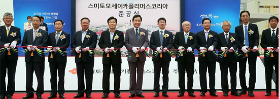 이날 준공식에는 우에다 유스케(上田雄介) 스미토모세이카 사장, 아리모토 타쿠미(有元匠) 스미토모세이카 폴리머스코리아 사장 등이 참석했다.