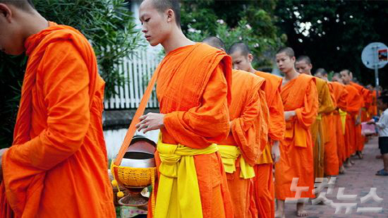 라오스 소년 스님들의 탁밧행렬(사진=더좋은여행 제공)