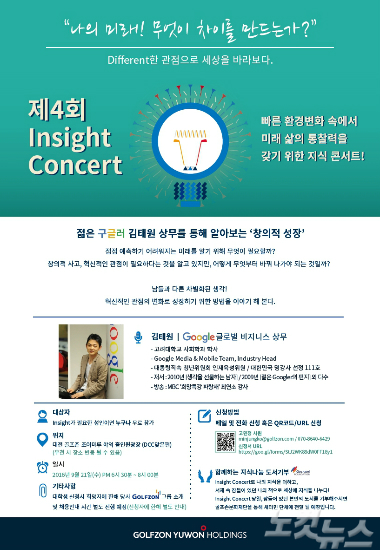 이번 인사이트 콘서트에는 김태원 구글글로벌 비즈니스 상무가 '나의 미래! 무엇이 차이를 만드는가?'를 주제로 강의한다.