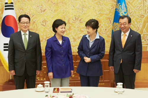 박근혜 대통령은 12일 여야 3당대표와의 청와대 회동에서 "한반도에 전쟁의 위험이 올 수도 있다"고 북핵 위협을 강조했다. 또 사드(고고도미사일 방어체계)의 필요성을 공세적으로 개진했다. 남북대화 재개는 시기상조라는 입장도 내놨다.