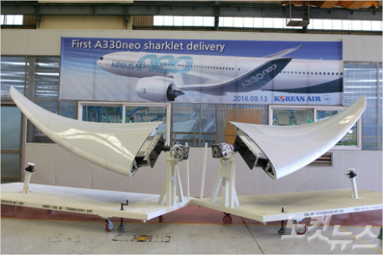 대한항공이 에어버스(Airbus)의 A320 네오 샤크렛(NEO Sharklet)에 이어 A330 네오 항공기의 날개 구조물인 '샤크렛(Sharklet)' 개발을 마치고 본격적인 공급에 들어갔다.