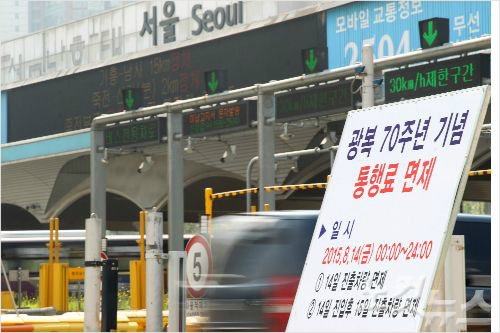 지난해 8월 14일 광복 70주년을 맞이해 하루동안 전국 주요고속도로 통행료가 면제됐었다 (사진=박종민 기자)