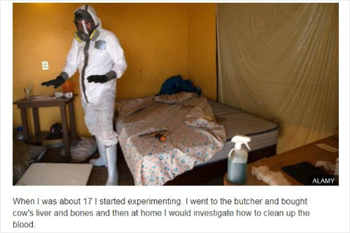 타베라는 "살인사건 현장에는 피가 많이 남기 때문에 피를 닦아내는 전문가가 필요하다고 생각했다"며 "17살 무렵, 정육점에서 소의 간과 뼈를 사서 피를 닦아내는 방법을 연구했다"고 했다.
