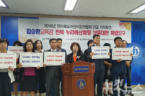 전북어린이집연합회가 어린이집 누리과정 예산 해결을 요구하고 누리반 임시휴업을 예고하고 나섰다.