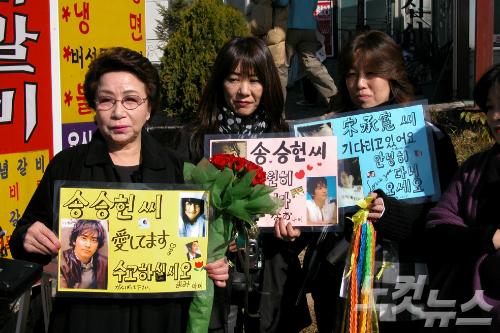 2004년 송승헌씨가 입영하는 날 102보충대대 앞을 찾아 환송하고 있는 일본 팬들 (사진=강원CBS)