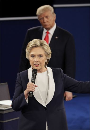 이날 토론에서 클린턴은 시종 꼿꼿한 모습였지만 지난 1차 토론 때와 비교해 편안해 보이지는 않았다. 트럼프는 중간중간 끼어들고 자신에게 충분한 시간을 주지 않는다며 진행자에게 불만을 표시하기도 했다.