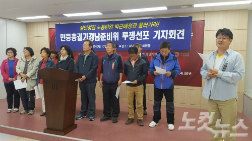 이들은 "다음달 12일 민중의 거대한 힘으로 박근혜 정권을 심판하고 민주주의와 민중 생존권을 지켜 내겠다"며 "경남에서는 2만명 참가를 목표로 모든 힘을 집중하겠다"고 밝혔다.