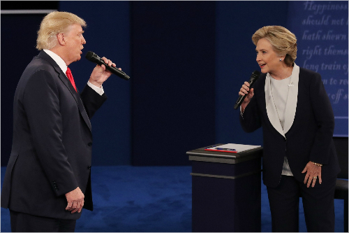 CNN은 9일(현지시간) 여론조사 기관 ORC와의 공동으로 TV토론 시청자를 상대로 실시간 여론 조사 결과 클린턴이 잘했다는 응답이 57%를 기록했다고 밝혔다. 트럼프가 잘했다는 답변은 34%에 머물렀다.