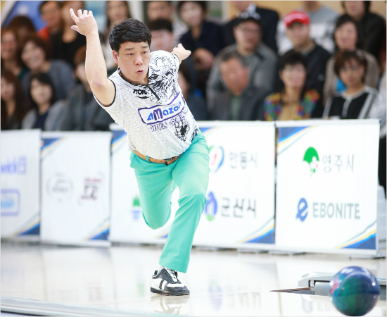 '이것이 20년차의 관록' 채준희가 10일 삼호코리아컵 국제오픈볼링대회 결승에서 호쾌한 샷을 날리고 있다.(안양=한국프로볼링협회)