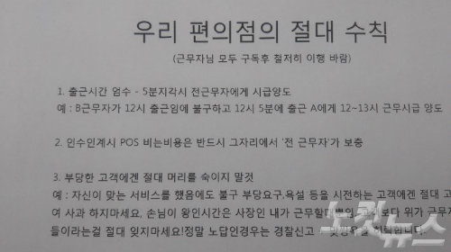 '우리 편의점의 절대 수칙'이라는 해당 게시물의 '착한'근로 수칙이 많은 아르바이트생과 네티즌의 공감을 일으킨 것이다.