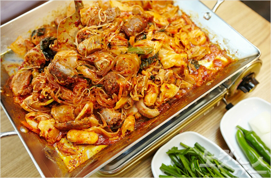 순대실록에는 전통 순대만 있는 것은 아니다. 현대적인 맛과 감각을 접목한 신 메뉴도 선보이고 있는데 철판에 구워먹는 '순대 스테이크'가 대표적이다. 대학로에 물결치는 저 많은 젊은이들에게 어떻게 하면 순대를 먹일 수 있을까 고민하다가 '순대를 구워보자'고 해서 탄생한 메뉴다. 대학로 맛집으로 입소문을 타고 젊은이들이 줄을 서기 시작한 효자상품이기도 하다. 철판에 구워먹는 '순대 스테이크'는 선지를 빼고 서리태, 땅콩, 잣, 해바라기씨 등 견과류와 마늘, 표고버섯으로 채운 순대다.