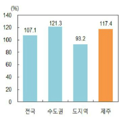 제주지역의 처분가능소득 및 경제규모 대비 가계부채 규모는 각각 117.4%, 66.6%로 전국 평균(107.1%, 56.0%)를 웃도는 수준이다. 가구당 가계대출 규모도 4528만원으로 전국(4465만원)보다 많다.