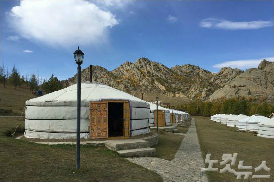 ◇ '나도 유목민처럼…' 끝없이 펼쳐지는 초원에서 말타기한국인보다 더 한국어를 정확하게 구사하는 몽골인 가이드 어유나(30.여)씨의 손에 이끌려 울란바토르에서 동북쪽으로 약 60km, 차로 1시간가량 떨어진 테를지 국립공원을 찾았다.
