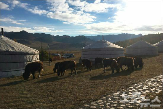 게르 주변에서 말과 야크 등 가축이 한가로이 풀을 뜯는 모습은 마치 동화속의 한 장면이 툭 튀어나온 것 처럼 인상적이다.