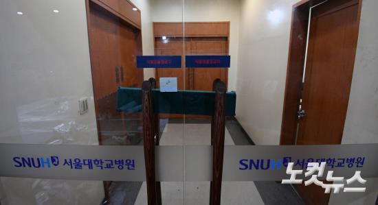 고 백남기 농민 부검 영장집행 기한을 하루 앞둔 24일 오후 서울 종로구 서울대병원 장례식장 안치실 출입문이 굳게 닫혀 있다.