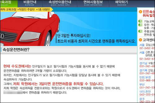 최근 운전면허 시험장이나 인터넷에는 속성운전학원 광고가 쏟아지고 있다.