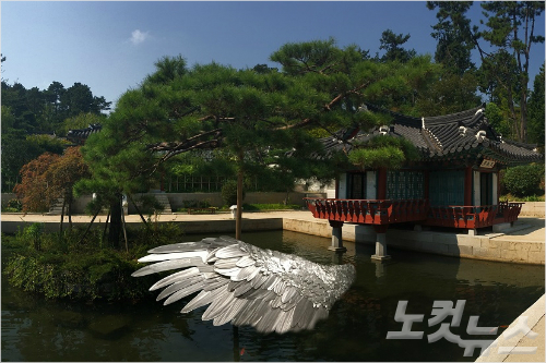 한국정원 내 연못을 배경으로 구상한 신작 ‘떠다니는 섬’이나, ‘거꾸로 매달린 한옥’ 그리고 정보의 실제와 허상을 날카롭게 꼬집으면서도 세계 속 한국의 위상을 선보이고 있는 ‘인포트리’, 새롭게 선보이는 한옥 속에 매달려 있는 거대한 날개 조각은 우리에게 세계 속 한국의 위상, 전통과 현대, 정원의 이상과 실제 그리고 자연과 환경에 관한 다양한 질문들을 우리에게 던진다.