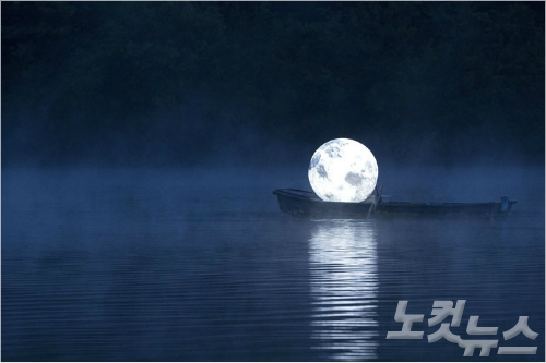 ▲ 중진 허강 작가의 '만천명월(萬千明月)'이미지 자체로는 WWT습지에 거대한 달을 따 왔다고 할 수 있다. 12미터에 이르는 거대한 황포돛배 위에 7,7미터가 넘는 빛나는 달을 살포시 얹어 놓아 마치 이태백의 달을 가까이서 지켜보는 느낌을 모든 관객들은 경험할 수 있을 것이다.