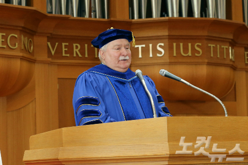 레흐 바웬사 전 폴란드 대통령은 "20세기 이후 우리는 많은 어려움이 있었지만 여러 분단과 국경을 없애는데 성공했고, 한반도에도 아직 희망과 기회가 있다"며 "이번 명예철학박사 학위수여식을 통해 한국이 통일하는 그 길에 함께하고 싶다"고 말했다.