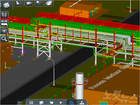 플랜트 현장의 모든 공정을 3D 형상으로 구현해 시공전 작업 담당자가 최종 완성품을 모바일 기기에서 미리 시각적으로 확인함으로써 종이 도면을 기초로 작업했을 경우에 발생할 수 있는 시공 오류를 최소화할 수 있다.