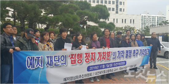 예지중·고 교사와 학생들은 7일 대전지검 앞에서 "재단 이사들은 공익법인의 설립 목적을 망각했고 학력인정 평생교육시설의 설립 취지를 저버렸다"며 "이들이 낸 집행정지 가처분 신청이 받아들여져 퇴출 이사들이 여전히 이사직을 유지하게 된다면 학교 현장은 더 이상 평생교육 실현의 장이 될 수 없을 것"이라고 주장했다.