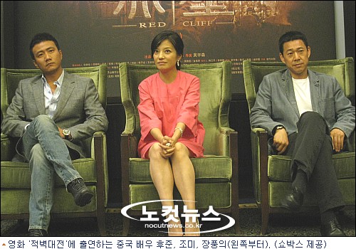 영화 ''적벽대전''에 출연한 중국 배우 조미와 장풍의, 후준은 지난달 26일 한국에서 열린 기자회견에 참석하지 못한 이유를 전하며 아쉬움을 표했다.