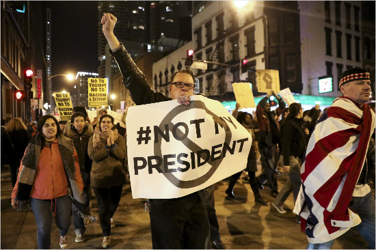제 45대 미국 대통령으로 당선된 도널드 트럼프를 반대하는 시위가 미국 전역으로 확산되고 있다. 트럼프 당선이 확정된 9일(현지시간) 새벽 펜실베니아와 캘리포니아, 오레곤, 워싱턴 주 등에서 트럼프 당선에 저항하는 시위가 잇따랐다.
