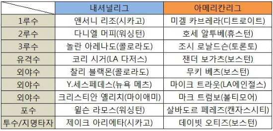 올 한해 미국 메이저리그에서 가장 뜨거운 방망이를 과시한 선수들이 가려졌다.