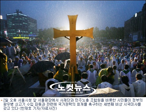 천주교 정의구현사제단이 최근 사흘 동안 시국미사와 촛불집회를 주관해 비폭력시위를 이끈데 이어 3일은 개신교가 주도하는 시국기도회가 시청 앞 서울광장에서 열린다.