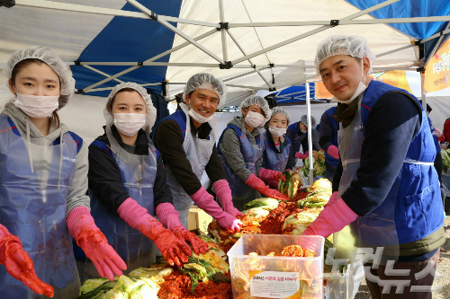 이날 대전 지역의 30개 기업 및 단체가 함께 담근 김치는 유성구 관내 저소득계층 1200세대에게 12㎏씩 전달될 예정이다.