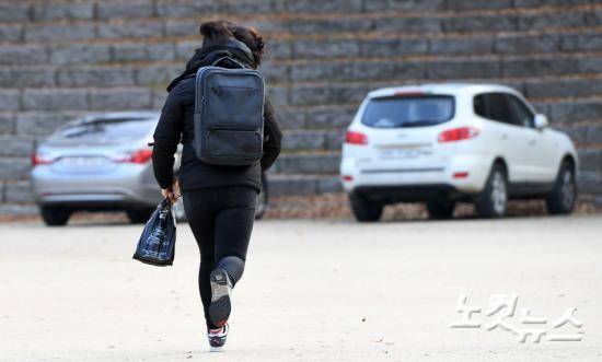 2017학년도 대학수학능력시험일인 17일 오전 서울 중구 이화여자외국어고등학교 고사장 앞에서 지각한 수험생이 고사장으로 뛰어가고 있다.