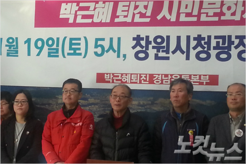 박근혜퇴진 경남운동본부는 18일 창원시청에서 기자회견을 열고 "창원시가 '창원광장 관리규정'을 근거로 들어 사용 불가를 통보했지만 행정관청의 규정으로 헌법에 보장된 국민의 기본권인 집회와 결사의 자유를 침해하는 것은 그것 자체로 위헌이며 민주주의의 유린이다"고 밝혔다.