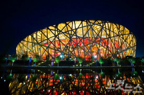 화려한 조명으로 빛나는 올림픽경기장, 베이징 올림픽을 성공리에 개최했던 장소다.(사진=투어2000 제공)