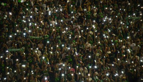 샤페코엔시 팬들이 경기장에 모여 추모의 뜻으로 핸드폰을 켜고 있다(사진=CNN캡처)