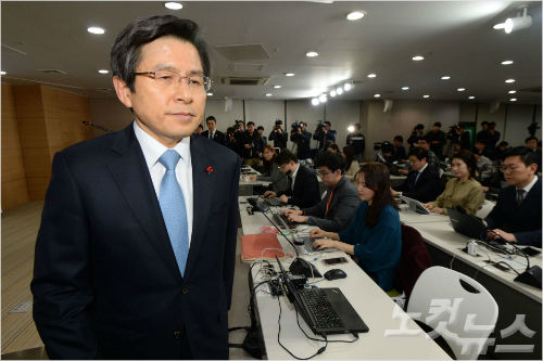 황교안 대통령 권한대행이 9일 오후 서울 세종로 정부서울청사에서 대국민담화를 마치고 퇴장하고 있다. 이한형기자